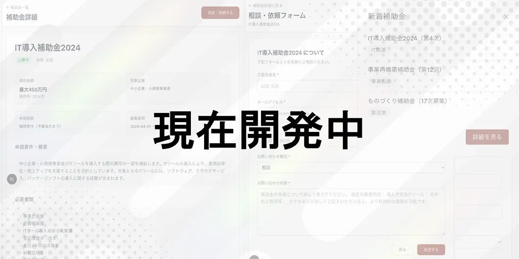 「はんじょうびと」は、補助金情報を簡単に検索できる機能、